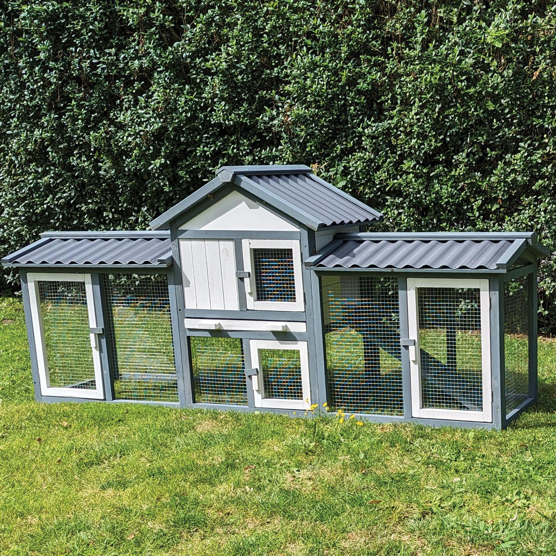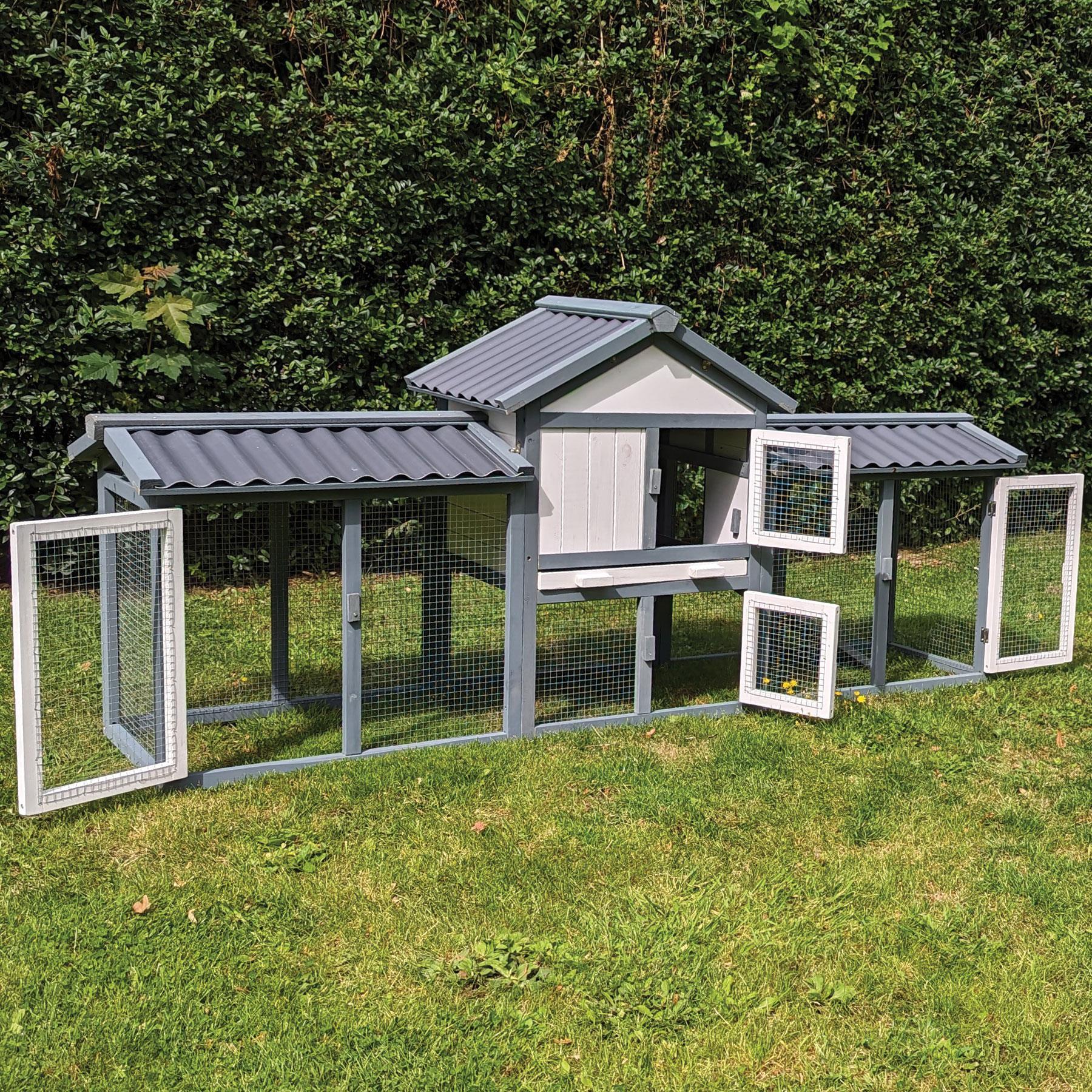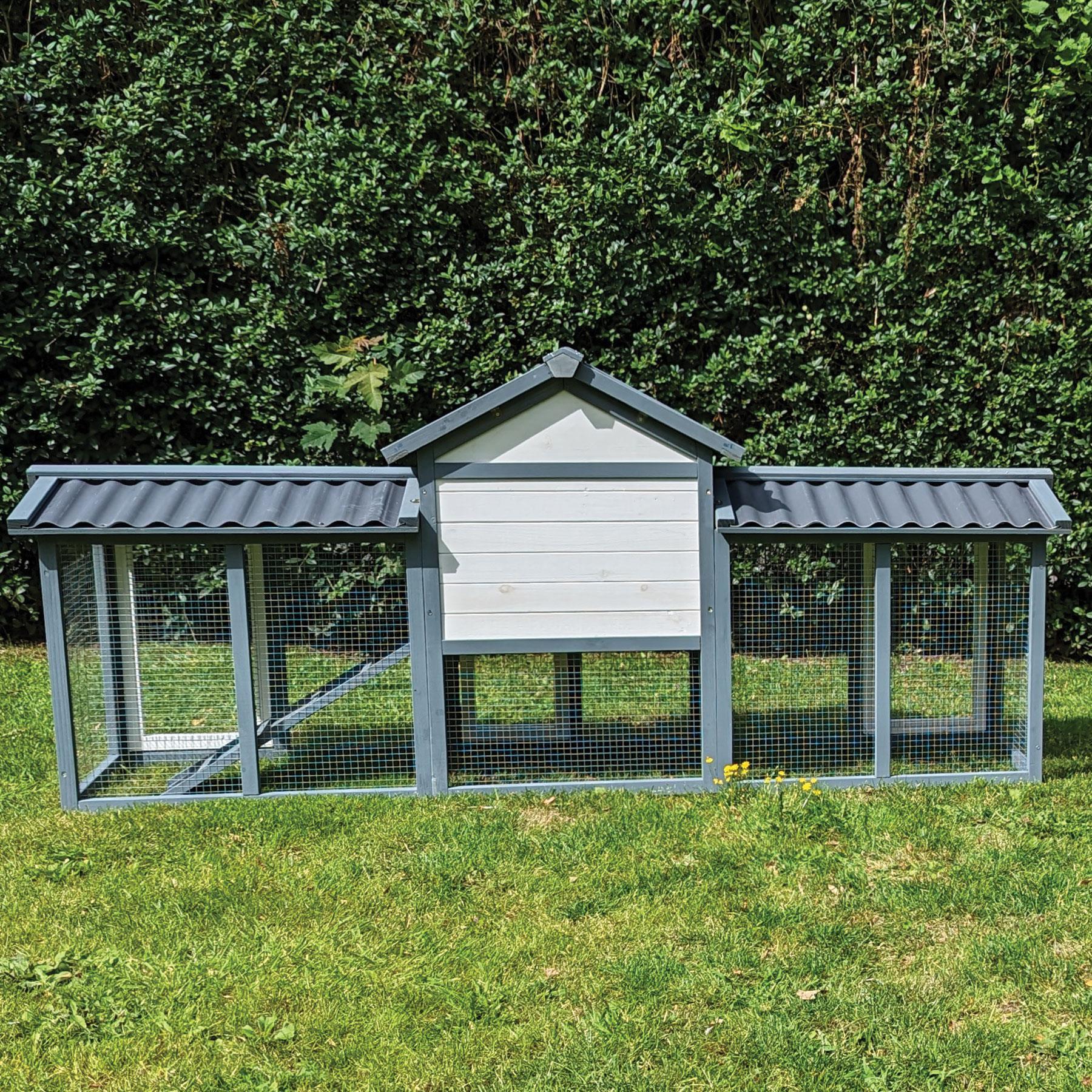 Nicht nur Kaninchen, sondern auch Meerschweinchen und andere Kleintiere fühlen sich hier wohl. Unsere Kunden haben berichtet, dass der Kaninchenstall Picasso auch perfekt zur Aufzucht von Küken und zur temporären Haltung von Seidenhühnern während der Brutsaison geeignet ist.