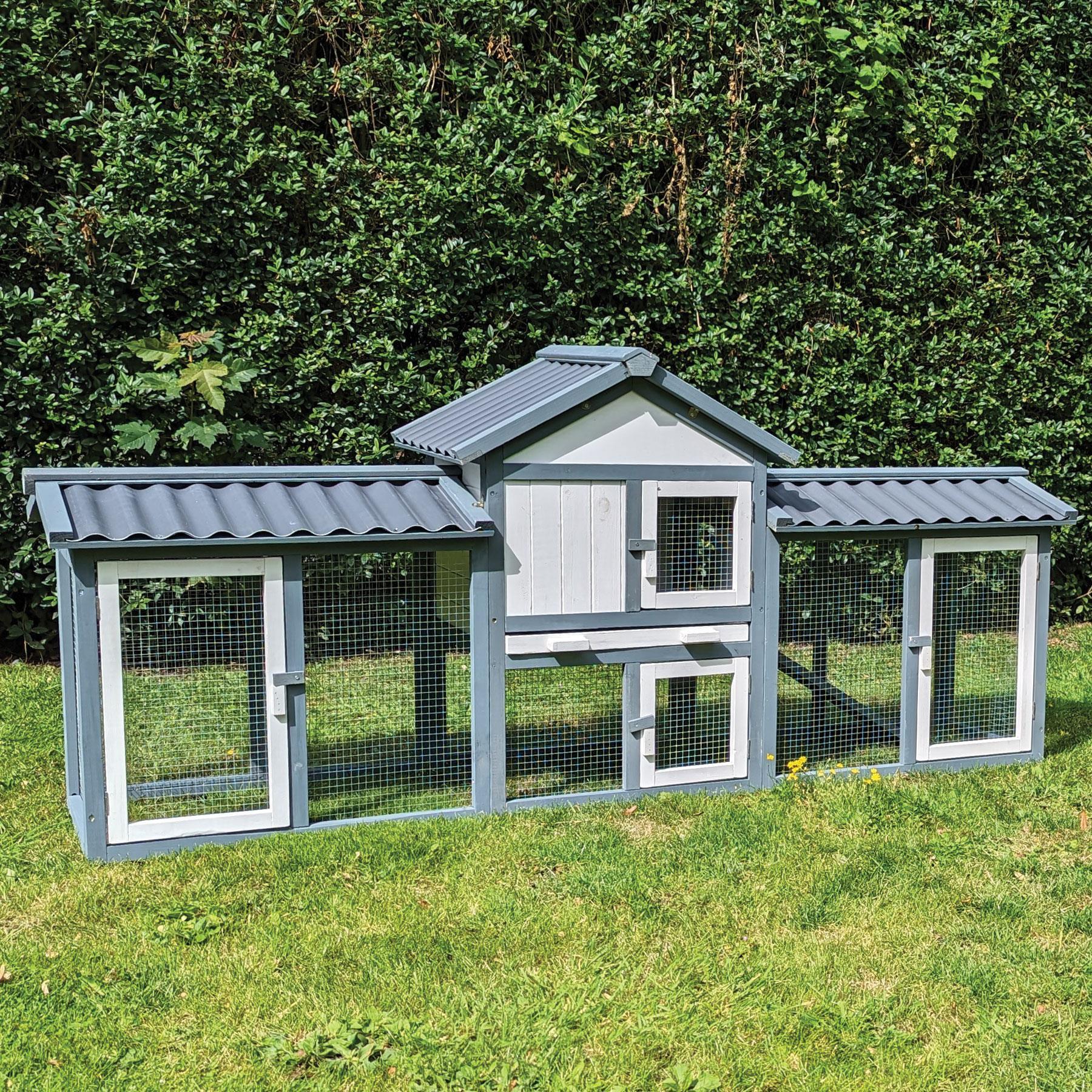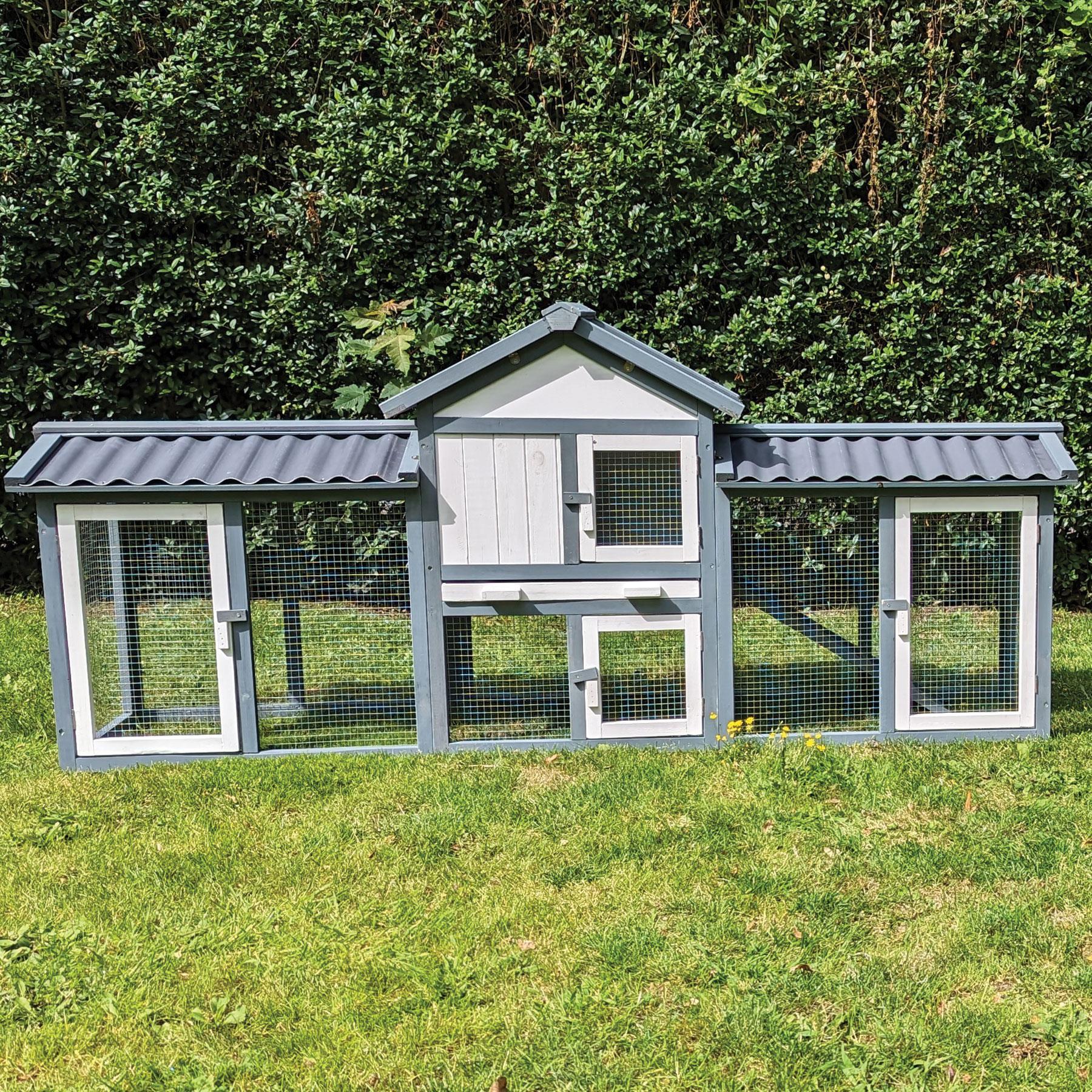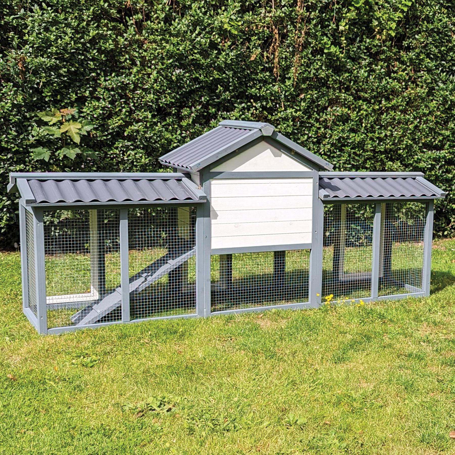 Nicht nur Kaninchen, sondern auch Meerschweinchen und andere Kleintiere fühlen sich hier wohl. Unsere Kunden haben berichtet, dass der Kaninchenstall Picasso auch perfekt zur Aufzucht von Küken und zur temporären Haltung von Seidenhühnern während der Brutsaison geeignet ist.